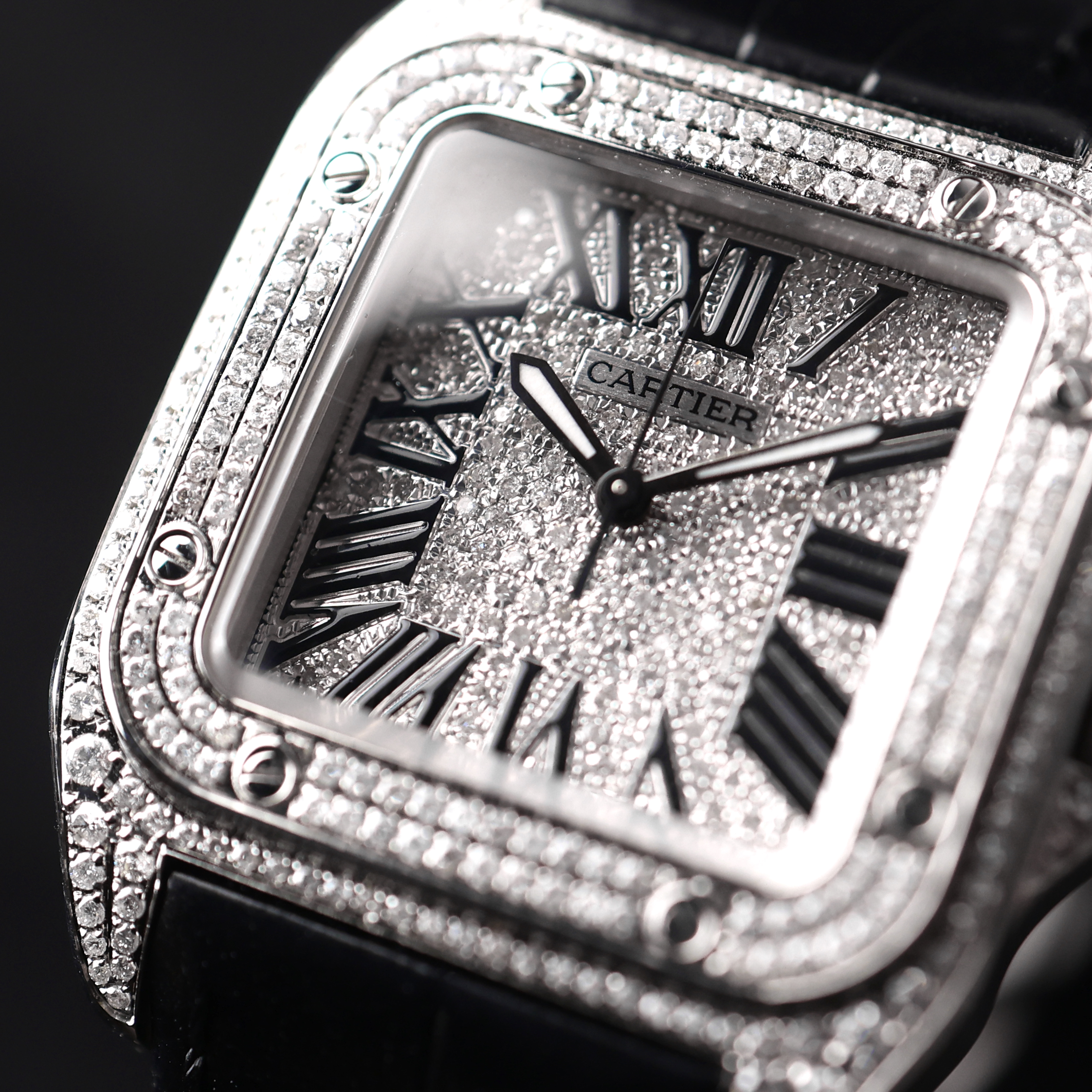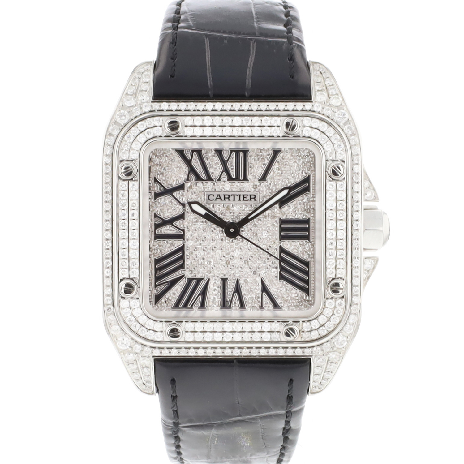Cartier Santos 100 MM Iced Out Diamonds