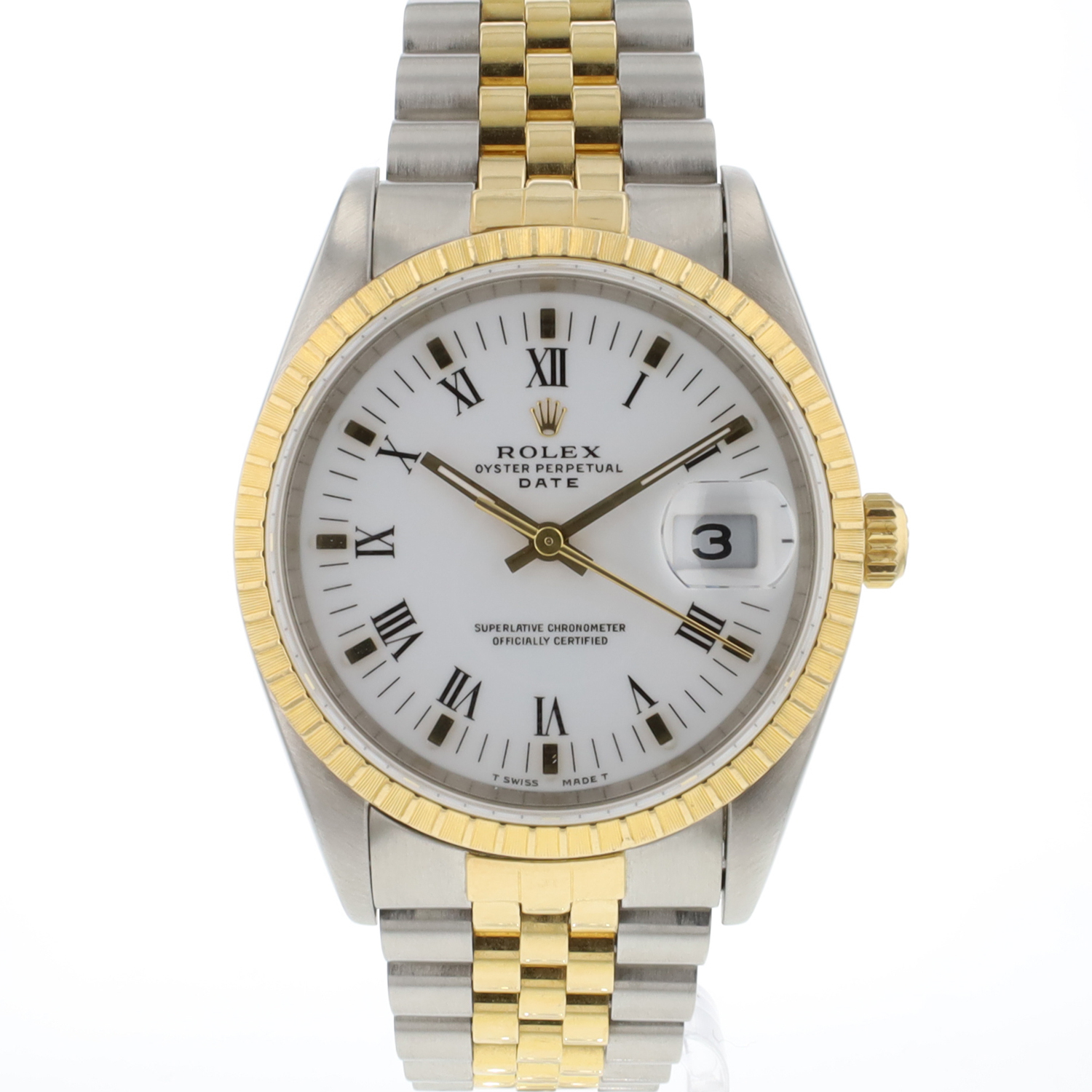Rolex Oyster Perpetual Date 34 Gold/Steel White Roman Dial