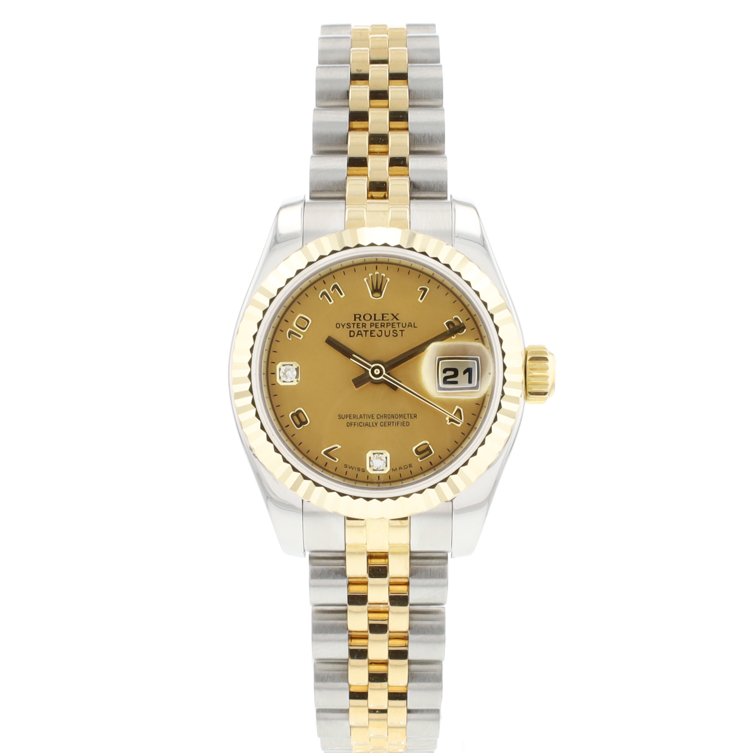 Rolex Lady-Datejust 26 Jubilee Fluted Steel/Gold Arabic Gold Dust Diamond Dial